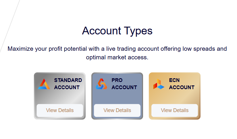 Standard accounts have no minimum deposit, Pro accounts start at $5, while ECN accounts require $3,000.