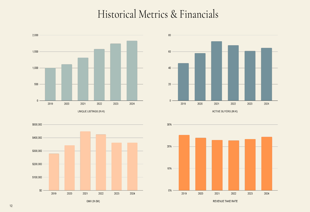 While the company has expanded its active buyer base and unique listings over time, revenue growth has been modest, and profitability remains elusive despite maintaining strong gross margins above 70%.