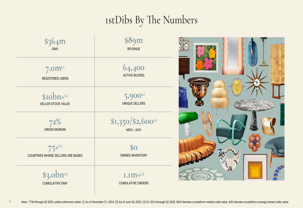 The company’s gross margin remains robust at 72%, while the median order value (MOV) stands at $1,350 and average order value (AOV) at $2,600, reflecting the platform’s luxury positioning. Notably, 1stDibs has facilitated over $3.0 billion in cumulative GMV and 1.1 million orders since Q1 2016.