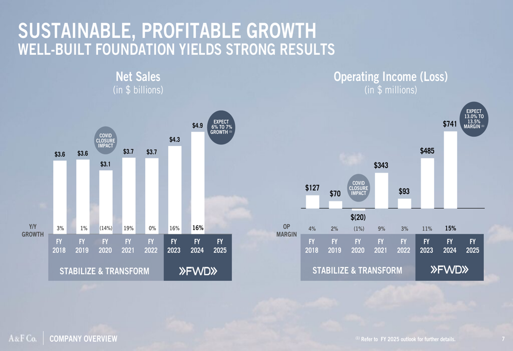 Abercrombie & Fitch’s ">>FWD>" strategy continues to guide its business transformation, focusing on three key pillars: executing global brand growth, accelerating enterprise-wide digital revolution, and operating with financial discipline.