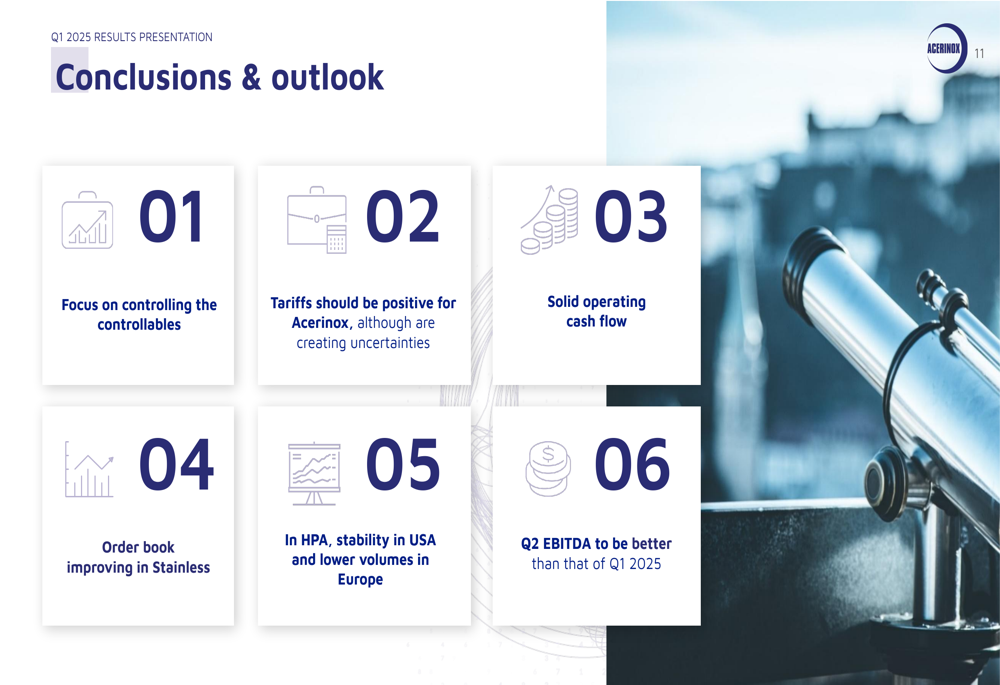 Management believes that tariffs should ultimately benefit Acerinox, though they are creating near-term uncertainties. The company maintains its focus on controlling internal factors while navigating external challenges.