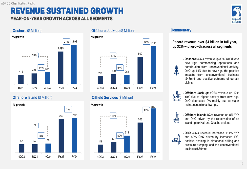 ADNOC Drilling’s financial performance in 2024 was characterized by strong growth across all key metrics, with the company exceeding its guidance that had been raised twice during the year.