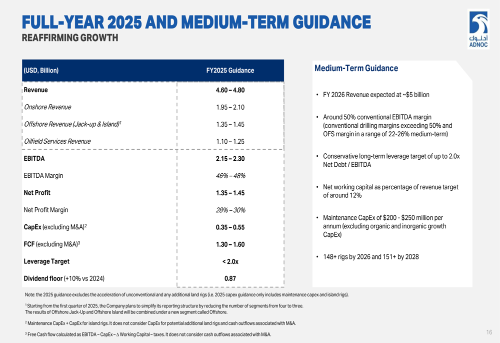 Looking ahead, ADNOC Drilling provided optimistic guidance for 2025 and the medium term, projecting continued growth across all business segments.