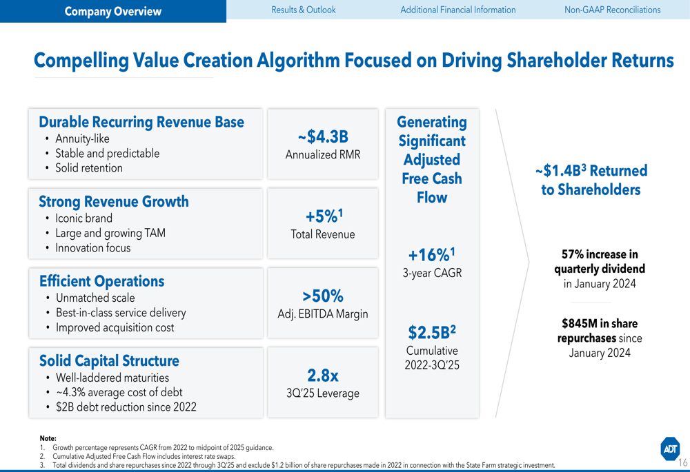 ADT’s Q3 2025 presentation demonstrates the company’s resilience and strategic focus on innovation and operational efficiency, positioning it for continued growth despite macroeconomic challenges. With its strong brand, expanding product portfolio, and disciplined capital allocation, ADT remains well-positioned to capitalize on the growing smart home security market while delivering value to shareholders.