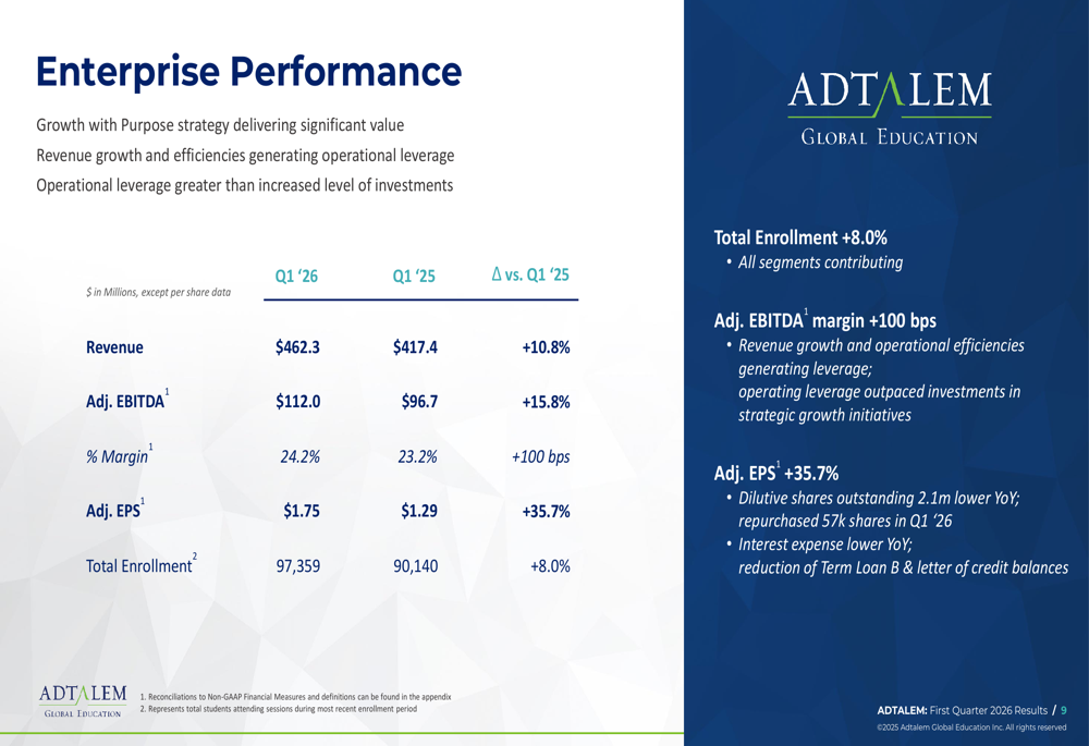 Adtalem highlighted several strategic initiatives and partnerships launched during the quarter to strengthen its position in healthcare education: