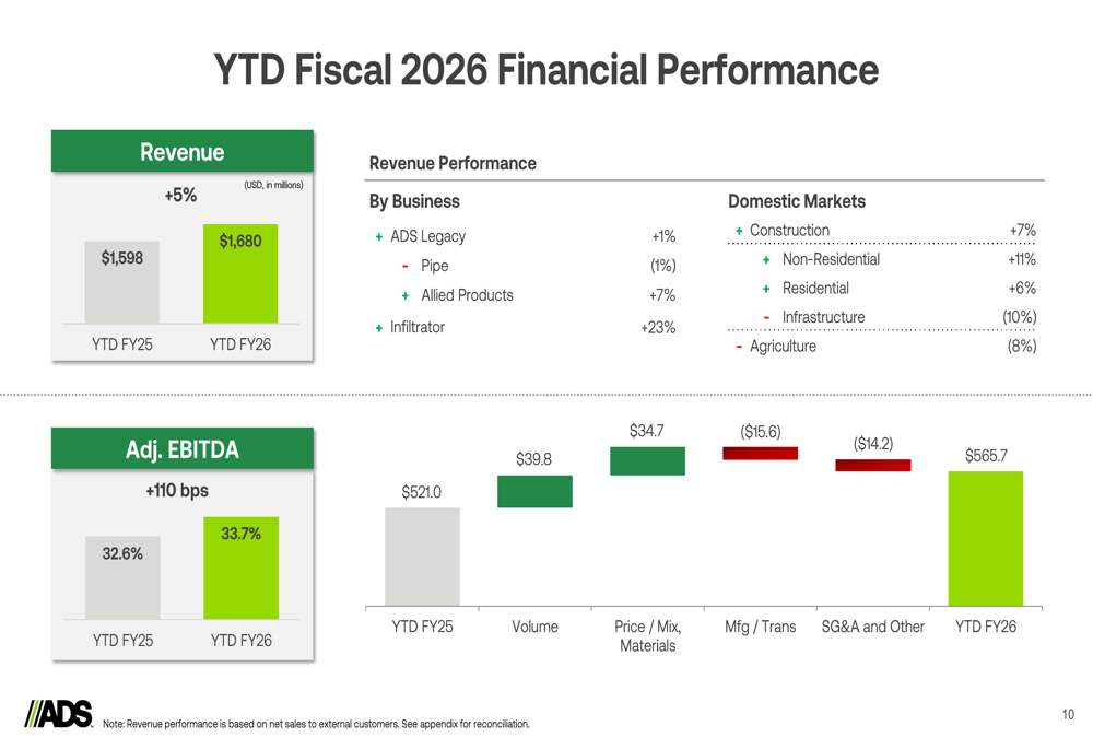 The company’s performance comes amid varying demand across its key markets, with non-residential construction showing strength while agricultural and infrastructure segments faced headwinds. ADS maintained a stable pricing environment while effectively managing costs, contributing to significant margin expansion.