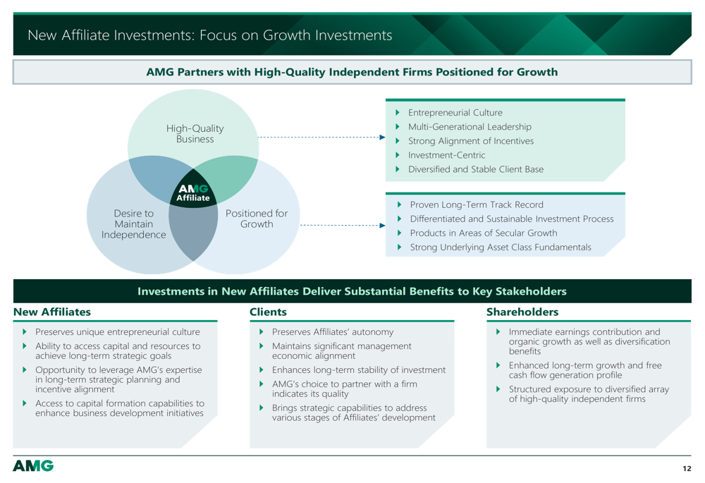 AMG’s partnership approach with independent investment firms remains central to its business model, as illustrated in this strategic overview: