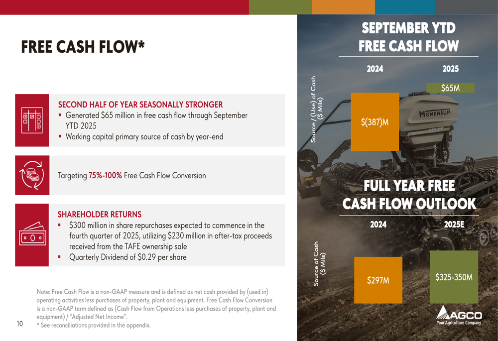 The company announced plans to commence $300 million in share repurchases in the fourth quarter of 2025, utilizing $230 million in after-tax proceeds from the TAFE ownership sale. This share repurchase program is part of a larger $1 billion initiative aimed at enhancing shareholder returns.