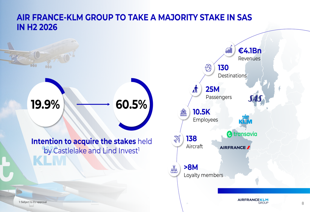 The group is also expanding its global footprint through strategic partnerships and acquisitions. Most notably, Air France-KLM plans to take a majority stake in SAS in the second half of 2026, which will add €4.1 billion in revenues, 130 destinations, and 25 million passengers to the group.