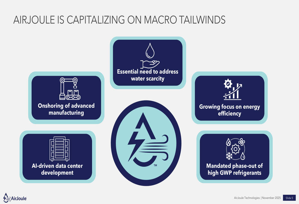 As shown in the following slide outlining macro trends driving AirJoule's business strategy, the company is positioning itself at the intersection of several major market forces: