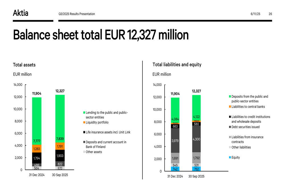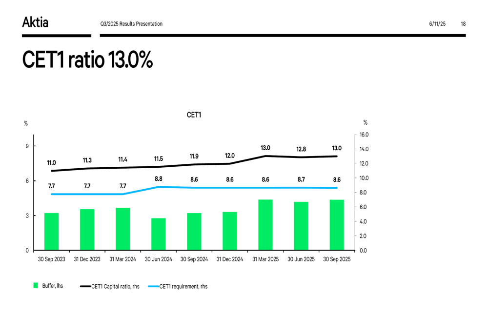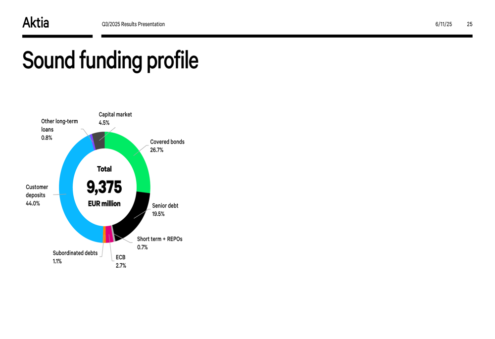 The bank's liquidity position remains strong, with a Liquidity Coverage Ratio (LCR) of 235% at the end of Q3. Aktia successfully issued another benchmark-sized Covered Bond in September, further strengthening its funding base.