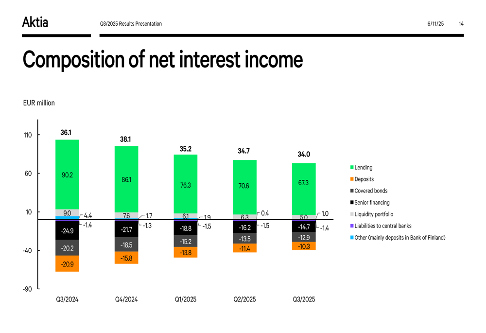 The composition of net interest income highlights the pressure points in Aktia's business, with lending contributing positively while other components like senior financing created drag: