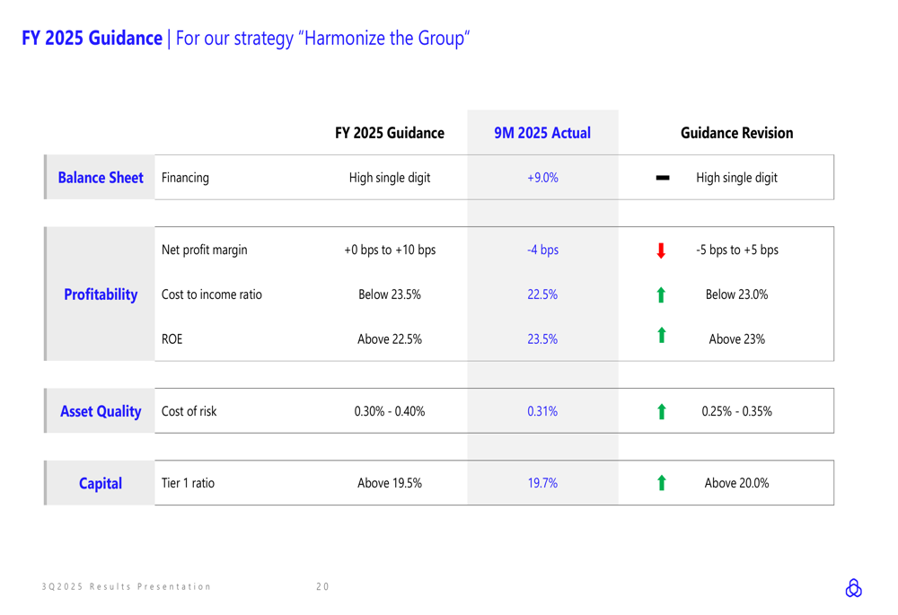 Digital transformation remains a priority, with the digital-to-manual ratio improving to 96:4 in Q3 2025 from 94:6 in FY 2023. This focus on digitalization has contributed to the bank’s industry-leading cost-to-income ratio of 22.5% for the first nine months of 2025, down from 25.4% in the same period last year.