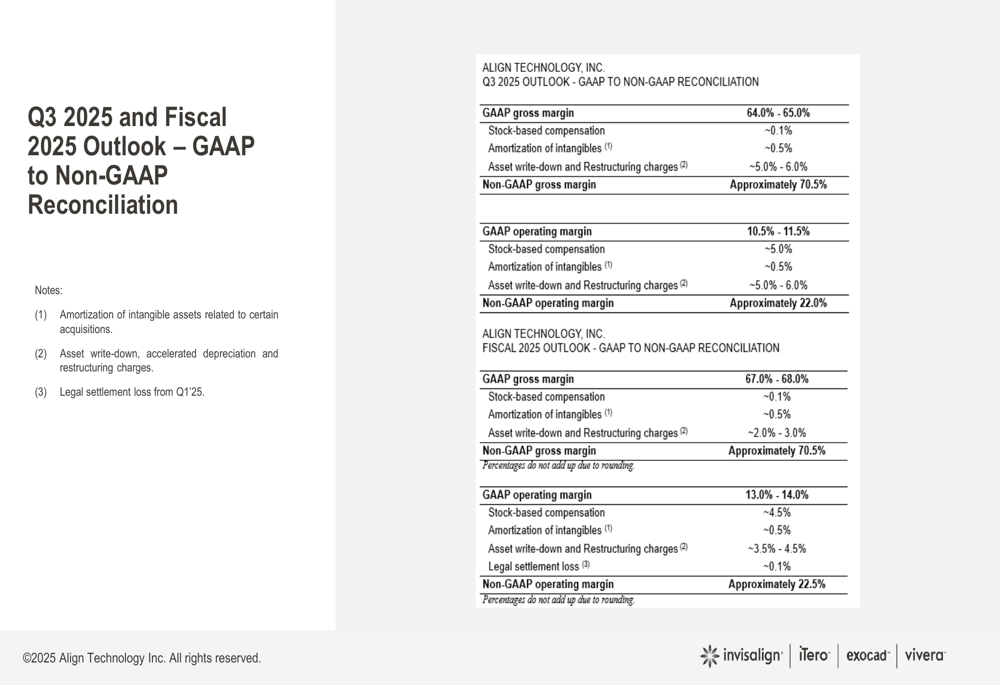 For Q3 2025, Align expects worldwide revenues to range between $965 million and $985 million, with GAAP gross margin of 64-65% and GAAP operating margin of 10.5-11.5%. For the full fiscal year 2025, the company projects GAAP gross margin of 67-68% and GAAP operating margin of 13-14%.
