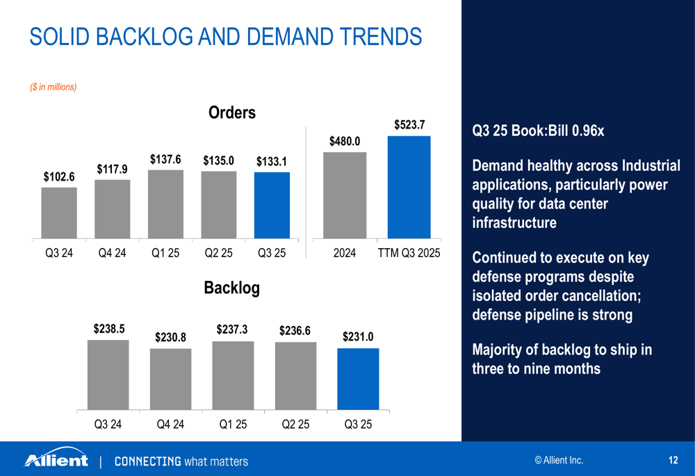 Despite strong current performance, Allient's book-to-bill ratio of 0.96x in Q3 suggests a potential moderation in growth: