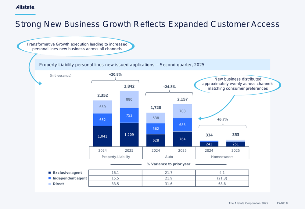 Allstate’s expanded distribution strategy has been particularly successful, as evidenced by strong new business growth across all channels. The company’s Property-Liability personal lines new issued applications showed significant growth in Q2 2025 compared to the same period in 2024.