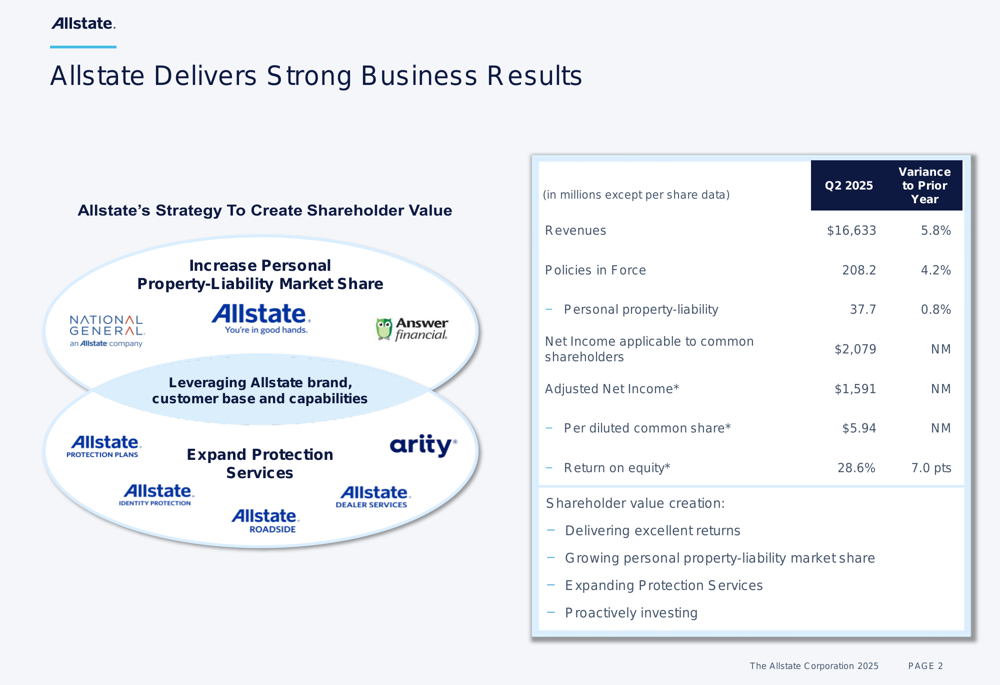 Despite these challenges, Allstate’s strong Q2 2025 results demonstrate the company’s resilience and ability to execute on its strategic initiatives while delivering value to shareholders.