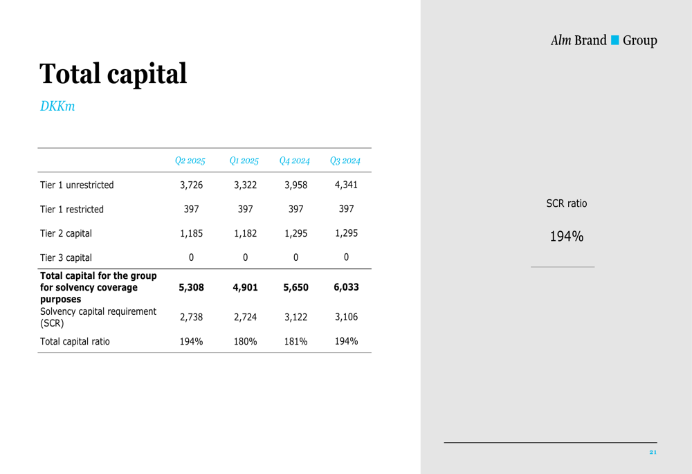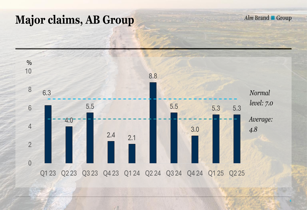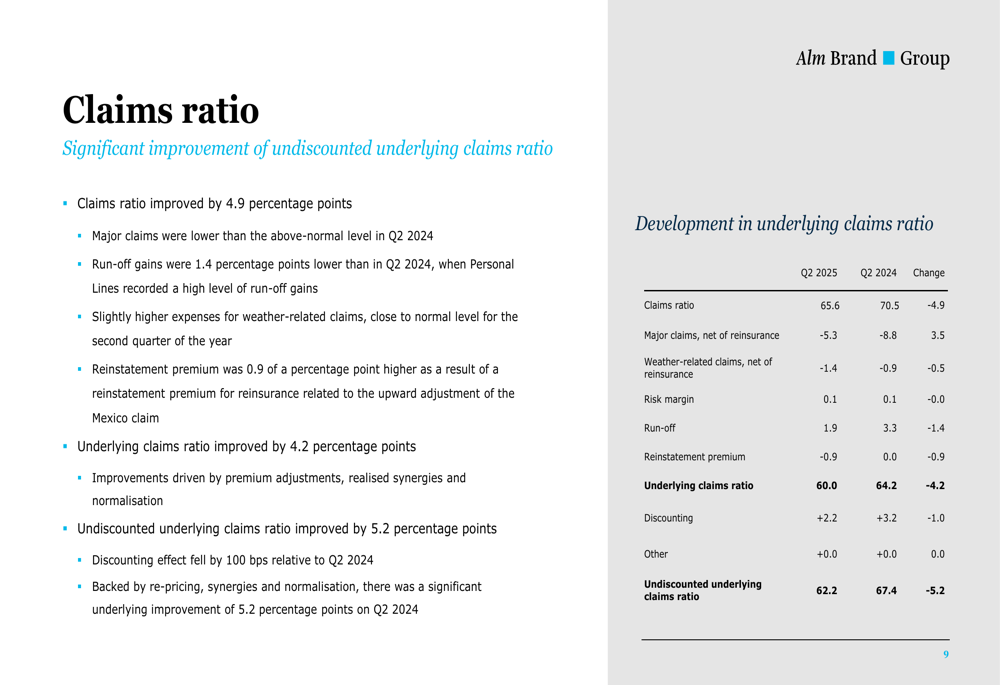 A key driver of Alm. Brand’s improved performance was the significant enhancement in claims experience. The claims ratio improved by 4.9 percentage points compared to Q2 2024, with major claims at 5.3% of premiums compared to 8.8% in the same period last year.