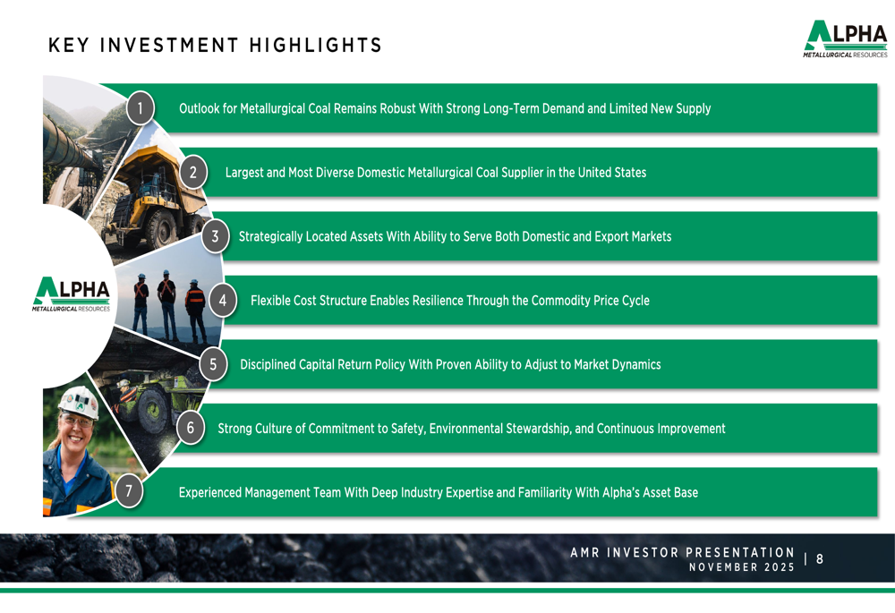 While Alpha's presentation paints an optimistic picture of the metallurgical coal market outlook with robust steel demand growth projected through 2034, the company's recent earnings call struck a more cautious tone. Management indicated they are preparing for potentially challenging conditions in 2026, with domestic contract negotiations pending.