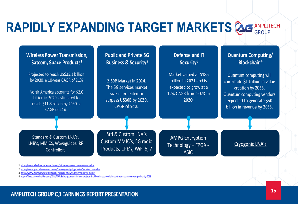 The following slide illustrates AmpliTech’s target markets and their growth projections: