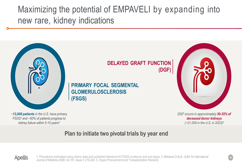 The company is also expanding EMPAVELI into additional kidney indications, specifically Delayed Graft Function (DGF) and Primary Focal Segmental Glomerulosclerosis (FSGS). These expansions target significant patient populations, with approximately 13,000 patients in the U.S. having primary FSGS and DGF occurring in approximately 30-35% of deceased donor kidneys.