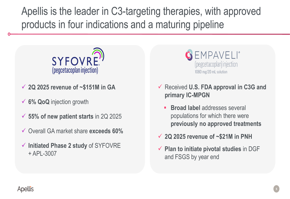As shown in the following slide highlighting Apellis’ leadership in C3-targeting therapies:
