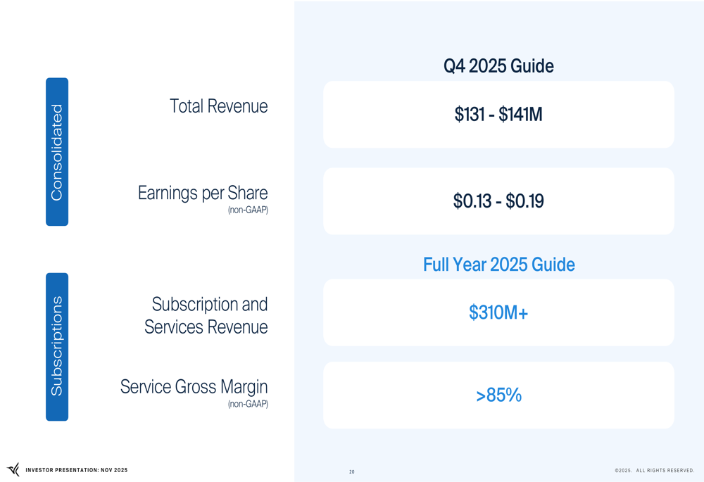 For the full year 2025, the company expects subscription and services revenue to exceed $310 million with service gross margins remaining above 85%. This guidance, particularly the Q4 revenue projection being potentially lower than Q3 results, may have contributed to the stock's decline despite the earnings beat.