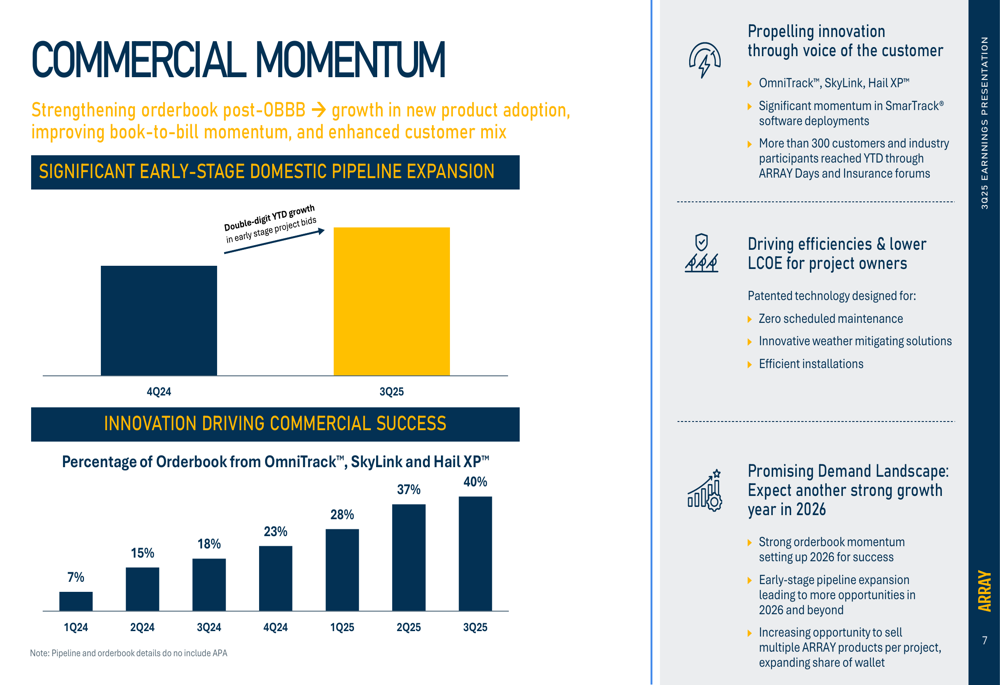 From a financial perspective, Array has maintained strong liquidity with over $365 million available post-acquisition of APA Solar and a net debt leverage ratio of 2.1X.
