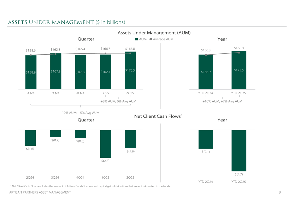 Despite the overall growth in assets, Artisan continued to face challenges with client flows. The company reported net client cash outflows of $1.9 billion in Q2 2025, compared to outflows of $1.6 billion in Q2 2024. Year-to-date outflows increased to $4.7 billion from $2.1 billion in the comparable period of 2024.