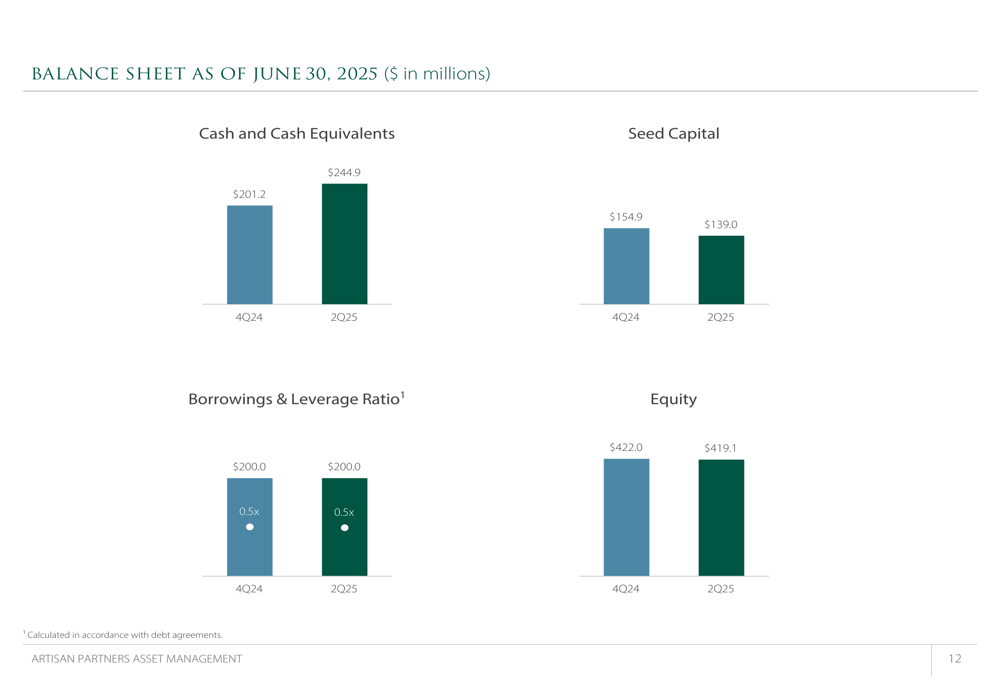 Artisan maintains a strong balance sheet with $244.9 million in cash and cash equivalents as of June 30, 2025, up from $201.2 million at the end of 2024. The company’s conservative approach to leverage is reflected in its 0.5x leverage ratio, unchanged from year-end 2024.