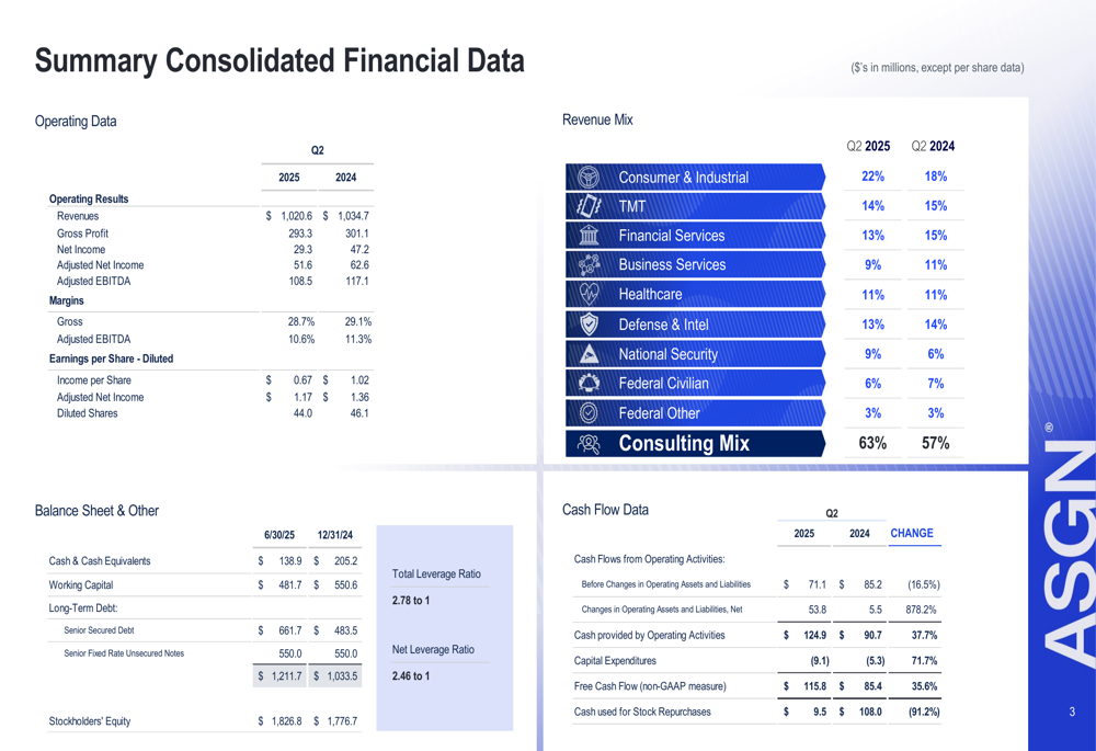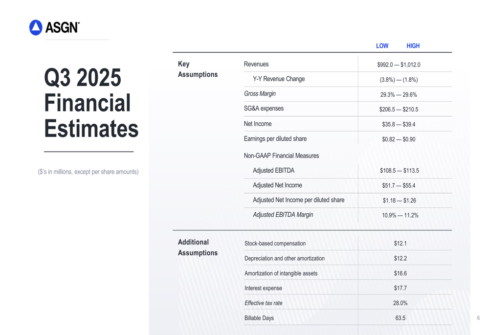 Looking ahead, ASGN provided a cautious outlook for Q3 2025: