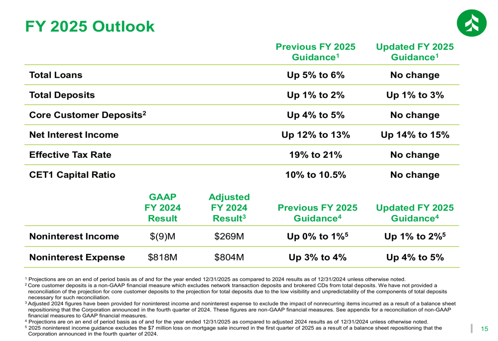 The bank slightly reduced its net interest income growth forecast to 12-13% (from 14-15%) and noninterest income growth to 0-1% (from 1-2%). Noninterest expense growth is now expected to be 3-4%, down from the previous guidance of 4-5%.