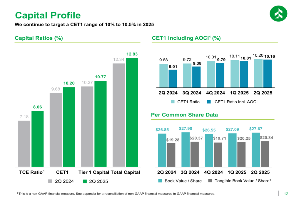 Capital levels remained strong, with the CET1 ratio improving to 10.20%, up from 9.68% in Q2 2024: