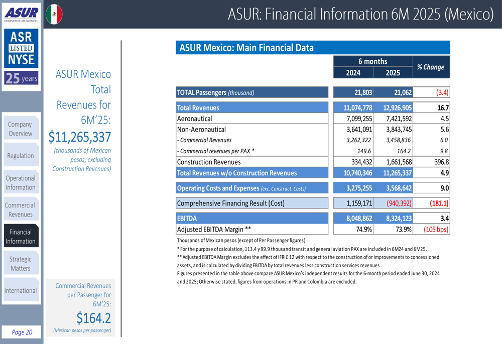 In the first half of 2025, ASUR reported continued growth in Mexico operations despite passenger traffic challenges: