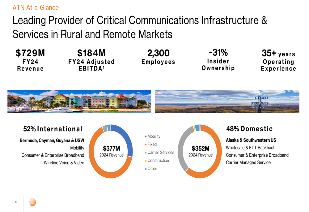 With $729 million in FY24 revenue, $184 million in FY24 Adjusted EBITDA, and a workforce of 2,300 employees, ATN continues to leverage its 35+ years of operating experience and significant insider ownership (approximately 31%) to drive long-term value creation.