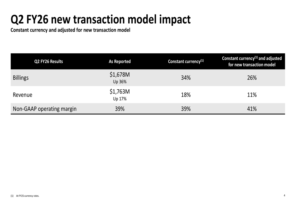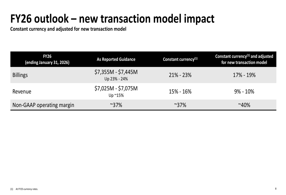 Similar to the quarterly results, Autodesk’s full-year outlook is significantly impacted by the new transaction model. When adjusted for constant currency and the new model, the underlying revenue growth for FY26 is projected at 9-10%, compared to the reported outlook of approximately 15%.