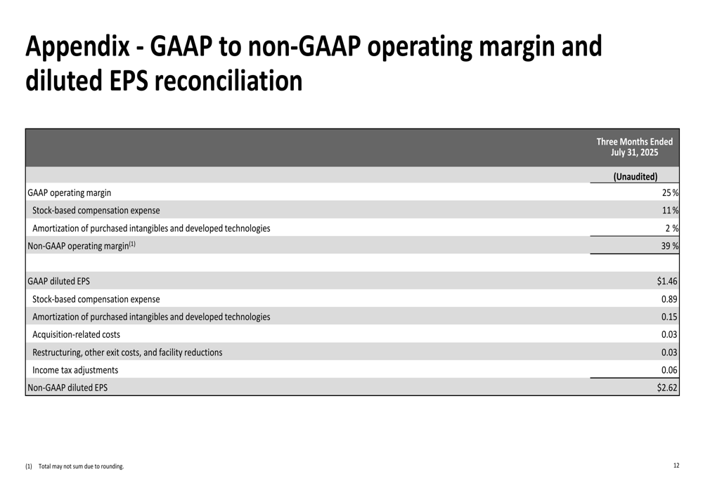 Autodesk’s reconciliation of GAAP to non-GAAP metrics highlights the impact of stock-based compensation and amortization of intangibles on its reported results: