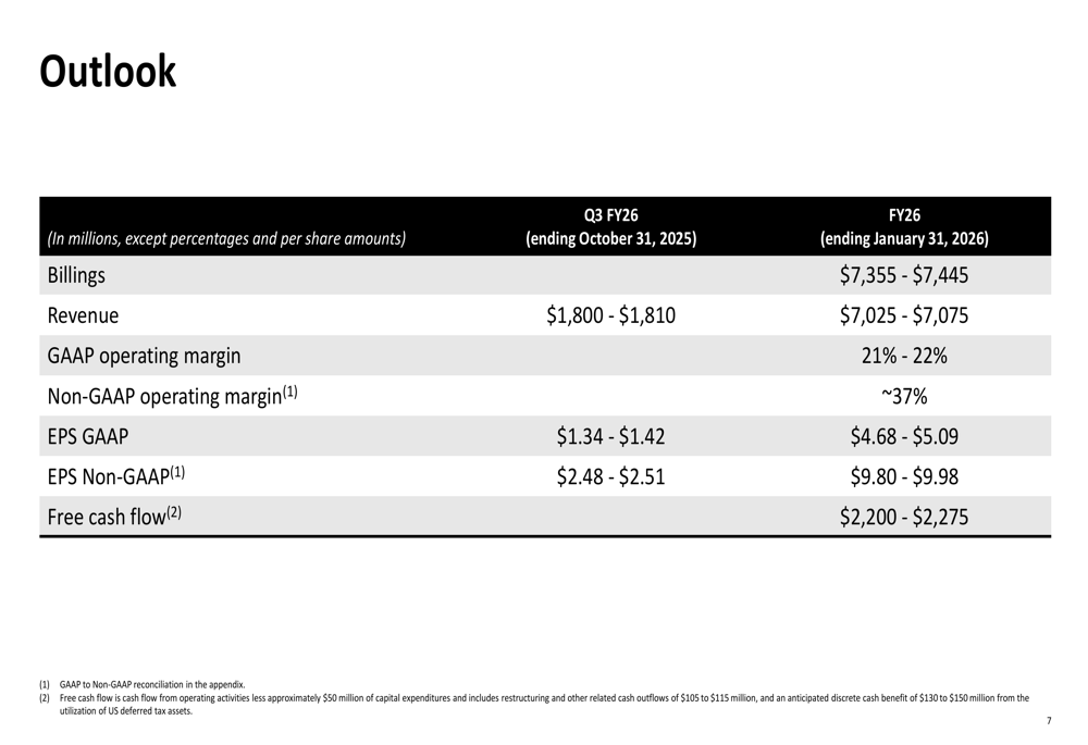 For the third quarter of fiscal 2026, Autodesk expects revenue between $1.80 billion and $1.81 billion, with non-GAAP EPS ranging from $2.48 to $2.51. For the full fiscal year 2026, the company projects revenue of $7.03-$7.08 billion, representing approximately 15% growth.