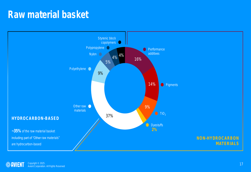 The company’s raw material composition provides some insight into its exposure to commodity price fluctuations: