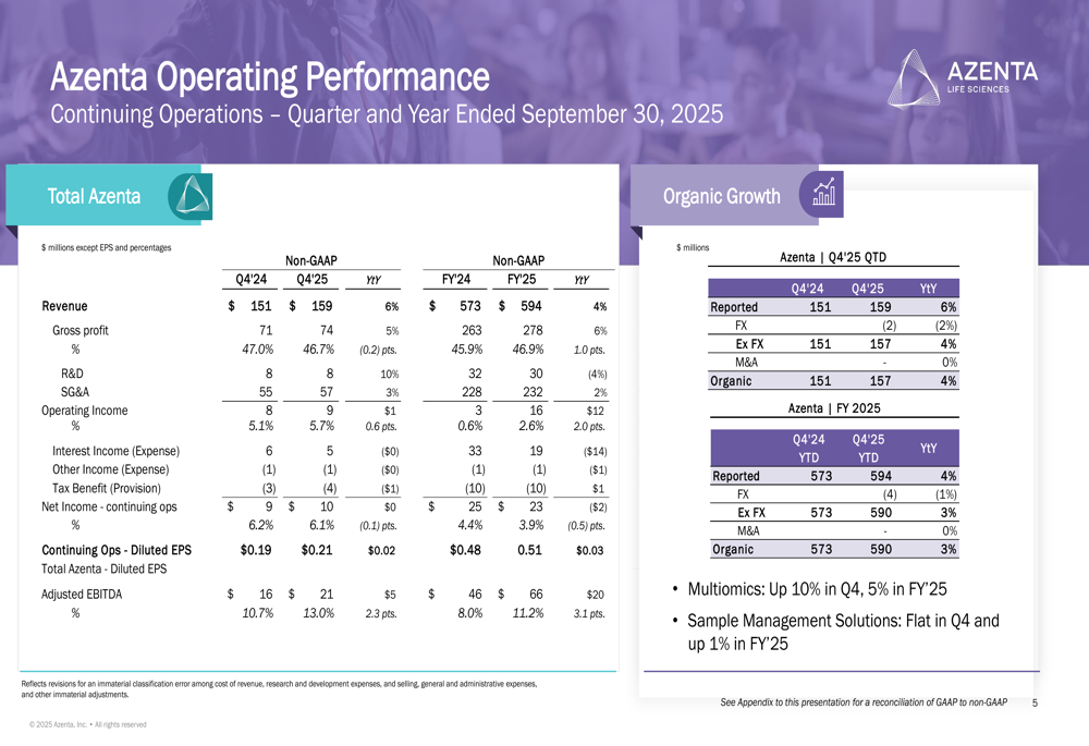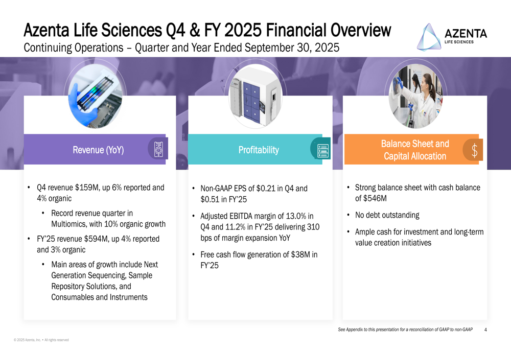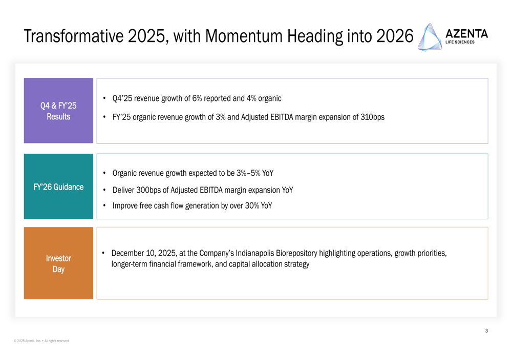 As summarized in the following slide, Azenta characterized 2025 as a transformative year and highlighted the momentum carrying into 2026: