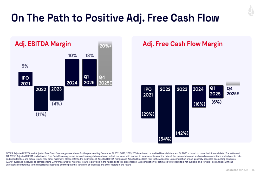 The following chart illustrates Backblaze’s path to profitability since its IPO: