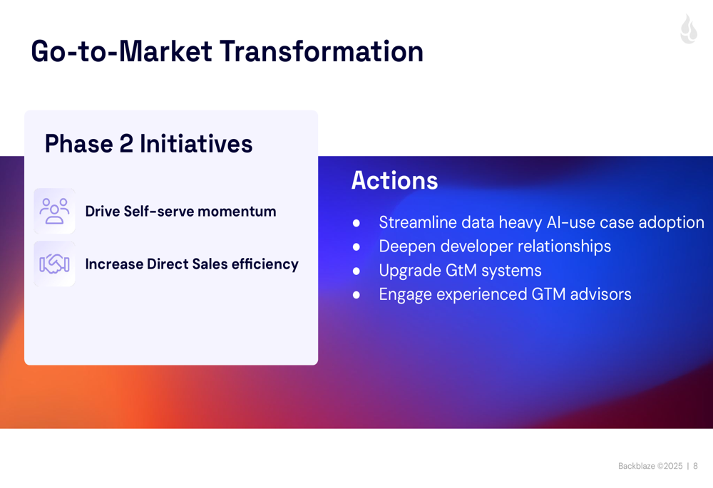 The company is executing phase 2 of its go-to-market transformation, focusing on driving self-serve momentum and increasing direct sales efficiency: