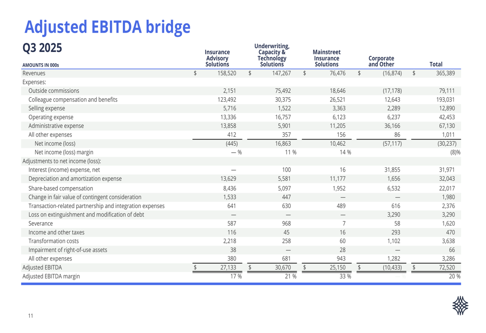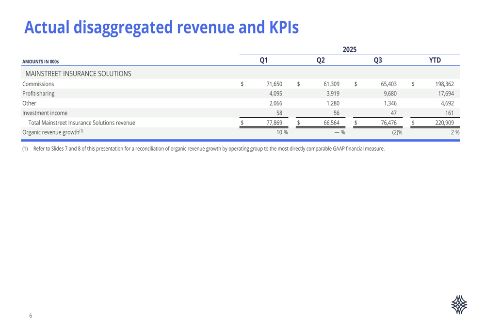 The Mainstreet Insurance Solutions segment showed particular weakness, with organic revenue declining by 2% in Q3 2025 compared to the same period last year: