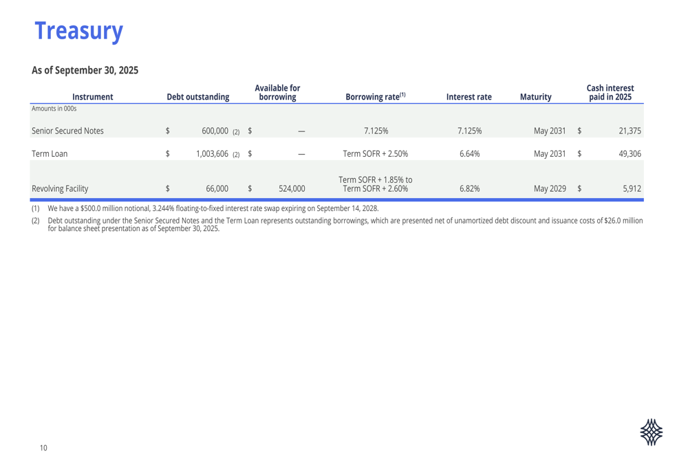 Despite the significant debt load, the company reported that its net leverage is on track to reach 4 times by year-end, as mentioned in the earnings call. The strong growth in adjusted free cash flow to $41.8 million in Q3 2025 provides some reassurance regarding the company's ability to service its debt obligations.
