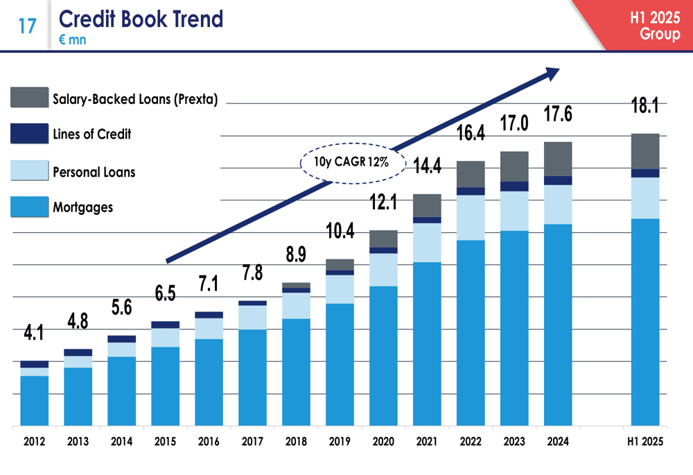 The long-term trend in the credit book demonstrates consistent growth, with a 10-year CAGR of 12%: