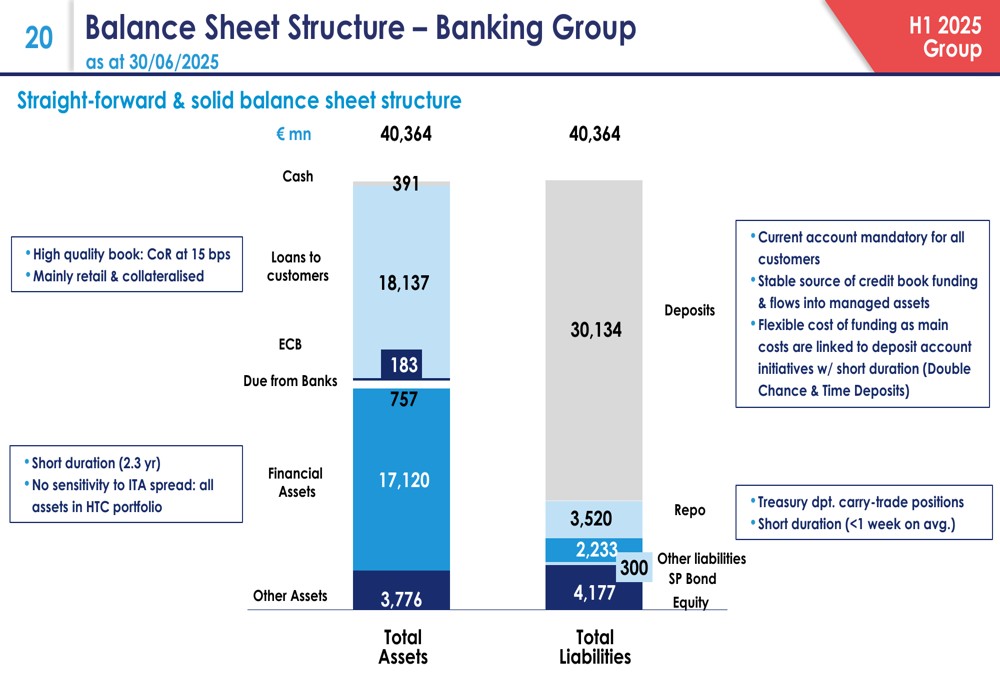 Banca Mediolanum maintained a robust capital position, with a CET1 ratio of 22.4%, well above regulatory requirements. The bank’s strong liquidity position is evidenced by an LCR of 422% and NSFR of 189%, providing ample flexibility for future growth initiatives.