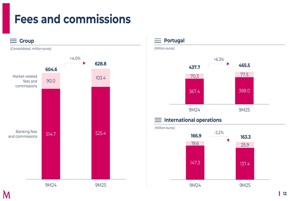 Fees and commissions showed strong growth in Portugal, increasing by 6.3% to €465.5 million, while international operations saw a 2.2% decrease to €163.3 million: