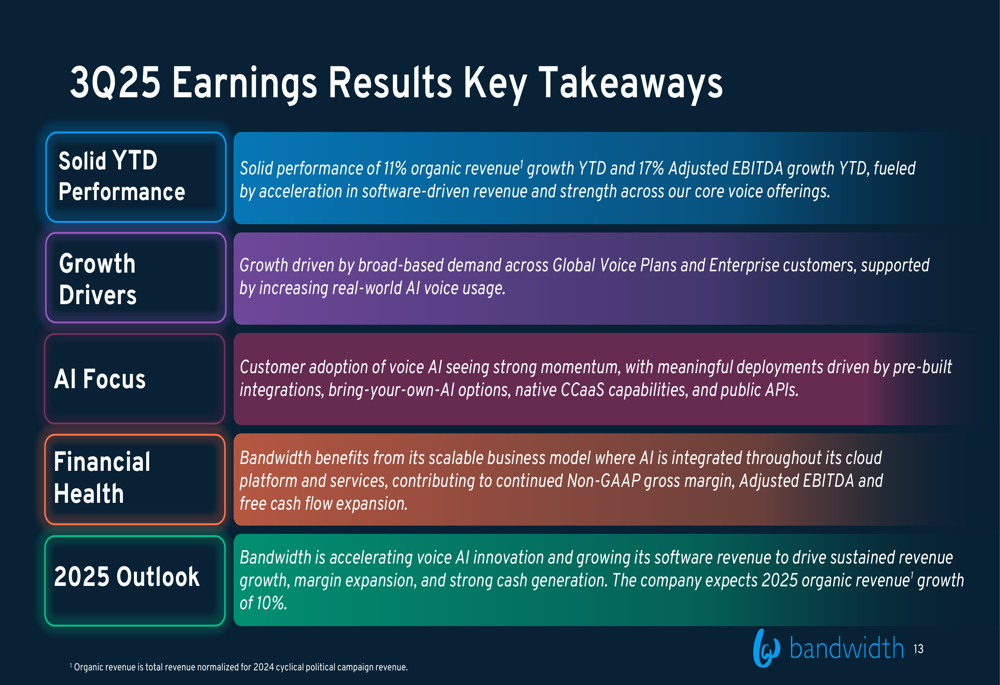 The key takeaways from Bandwidth’s Q3 2025 results highlight both achievements and ongoing strategic initiatives: