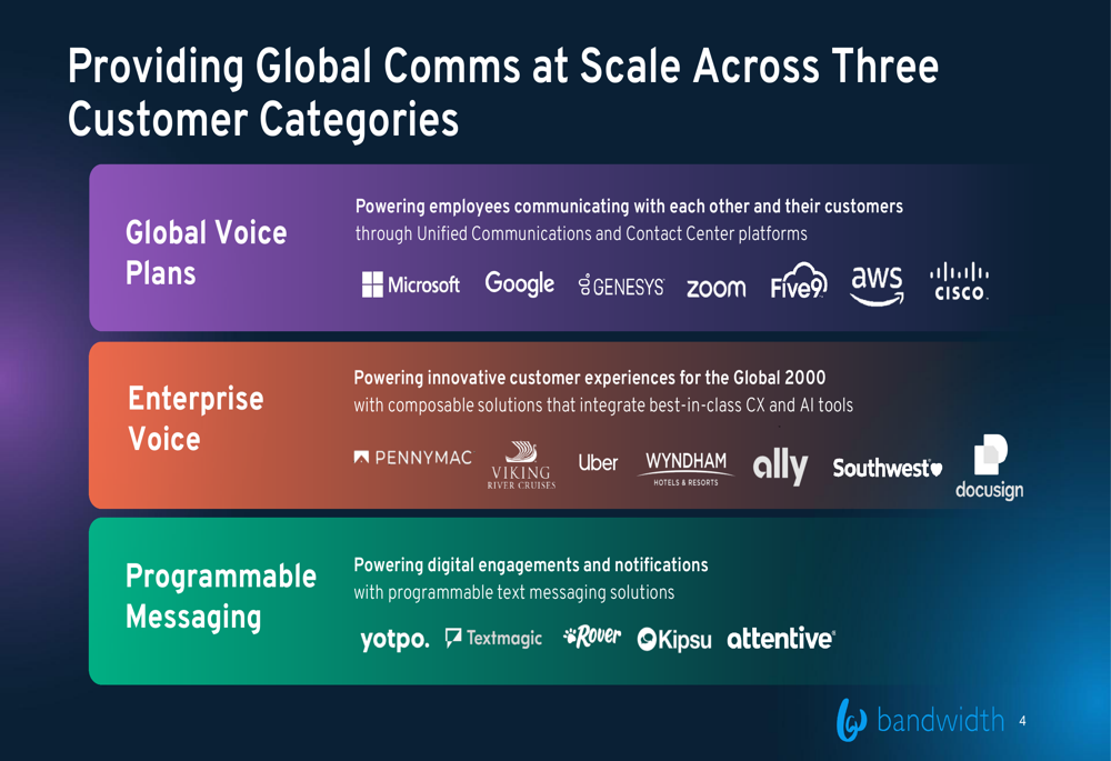 The company’s customer base includes major technology and enterprise clients across various segments. Global Voice Plans customers include Microsoft, Google, Zoom, and Cisco, while Enterprise Voice serves companies like Uber, Southwest, and DocuSign.