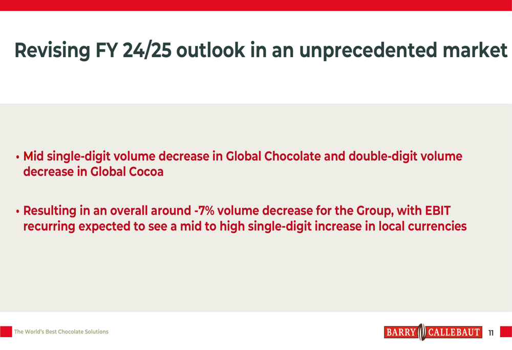 In response to the challenging market conditions, Barry Callebaut has revised its outlook for fiscal year 2024/25:
